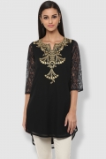 Ruhaani Tops Navy Blue and White Embroidered Tunic