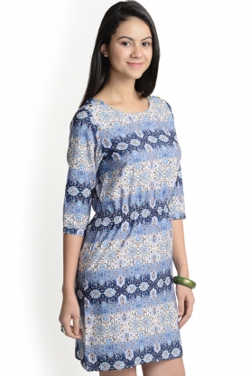 499 Blue Polyester 3/4 Sleeve Party Wear Dress