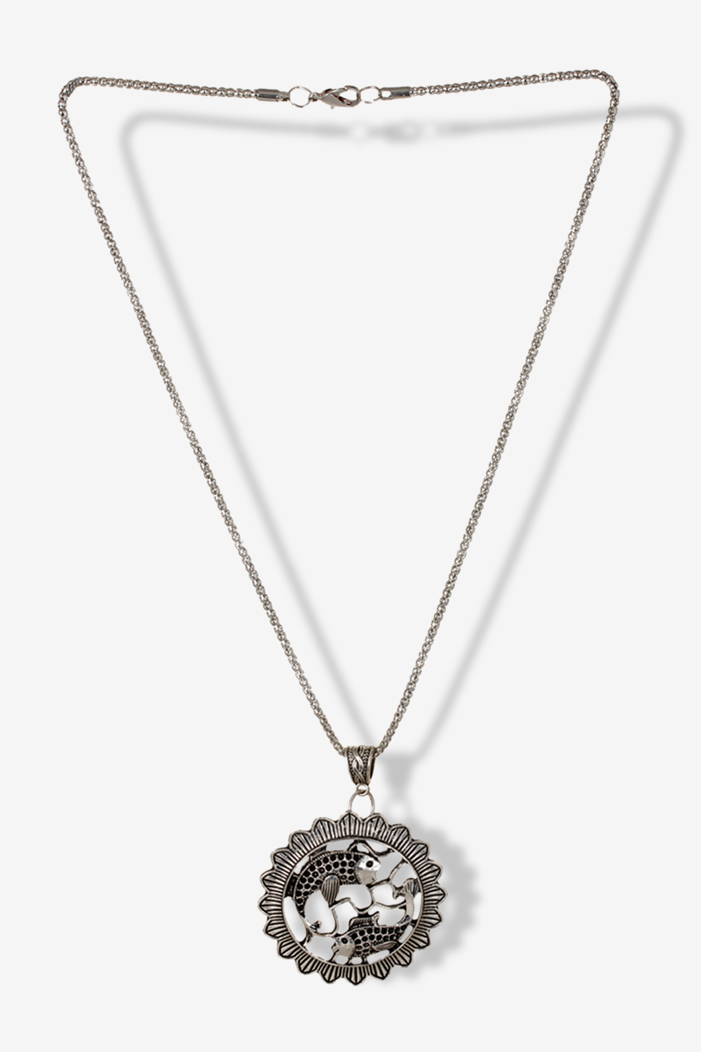 Deistic Stone Twin Fish Pisces Pendant in Silver