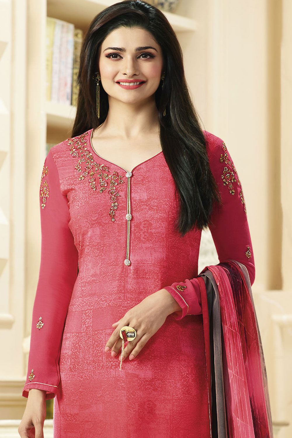 Ethnic Fashion Hut Pink Crepe Straight Salwar Suit