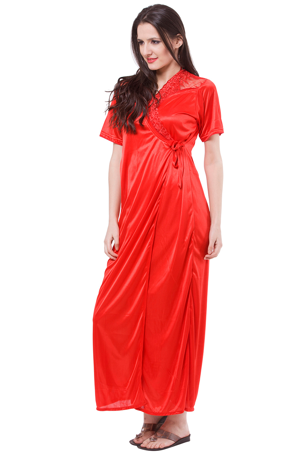 Fasense Red Satin Night Wear