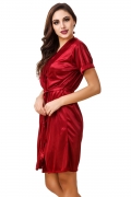Fasense Satin Maroon Nightwear 3 Pc Set of Short Skirt, Bra with Robe