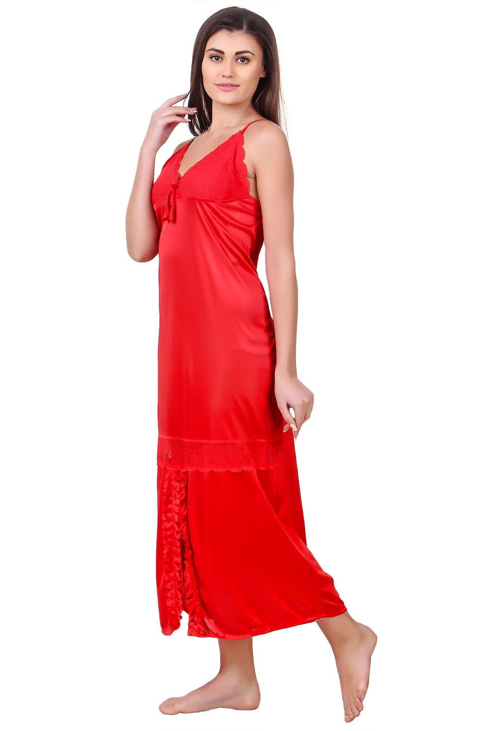 Fasense Satin Red Nightwear 2 Pc Set of Nighty and Wrap Gown