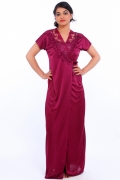 Fasense Wine Satin Night Wear
