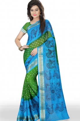 Viva N Diva Green Colored Lycra And Georgette Saree