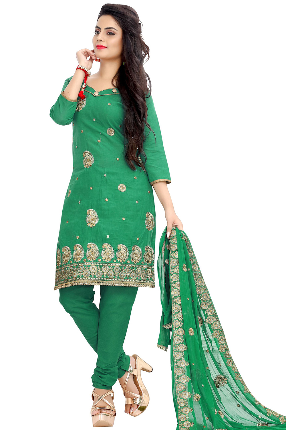 MINU and MANINI Semi stitched Cotton Green Color Emboridered Ethnic Wear Suit