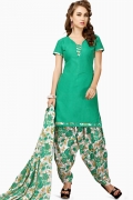 MINU and MANINI Semi stitched Cotton Green Color Printed Ethnic Wear Suit