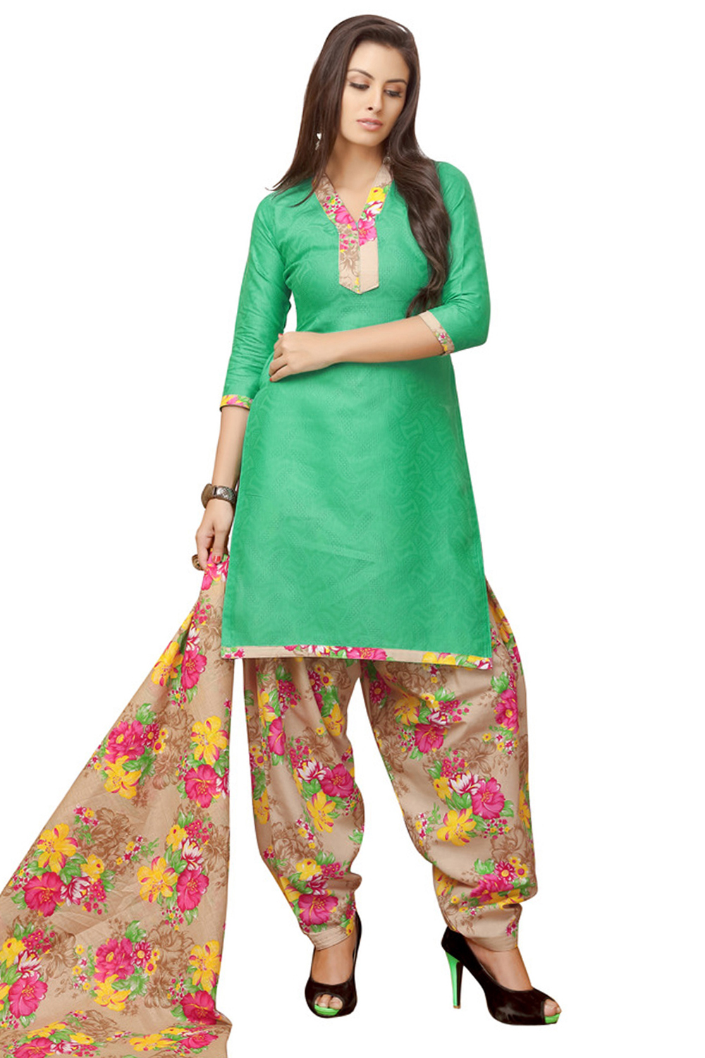 MINU and MANINI Suits Green Cotton Salwar Suits Sets Dress Material Freesize