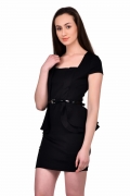 N-Gal Cap Sleeves Peplum Black Dress With Belt