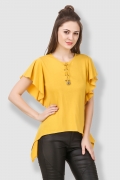 Texco Women Yellow Butterfly Sleeve Drawstring Neckline Stylish Trendy Top