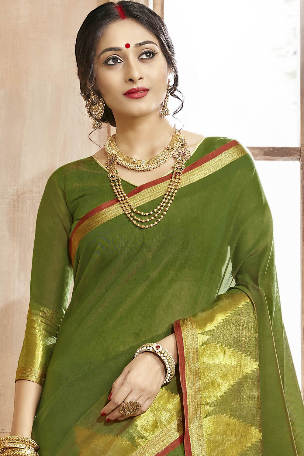 Viva N Diva Light Bottle Green Colored khadi Silk Saree