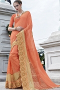 Viva N Diva Orange Colored Georgette And Rasal Net Saree